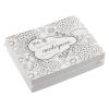 The outside of the sturdy lidded box of the Colorful Blessings Coloring Cards coloured and uncolored blooms. The title is scripted in bold black letters and placed in the center of the design
