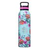 The stainless steel water bottle is finished in a vibrant, glossy teal coating and adorned with bright orange and mauve flowers all around the bottle's perimeter. The expression, His grace is sufficient for me is an adaptation of 2 Corinthians 12: 9 and is laser engraved in a cursive font.