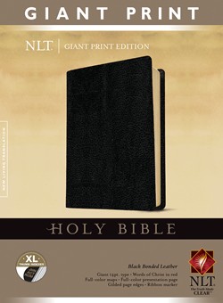The easy-to a-read, giant-print New Living Translation Bible is perfect for readers preferring a larger font. It has a 14-point font size, words of Christ in red, 16 pages of full-color maps, ribbon marker, gilded page edges, and a presentation page. This edition features a quality black bonded leather binding and a thumb index.
