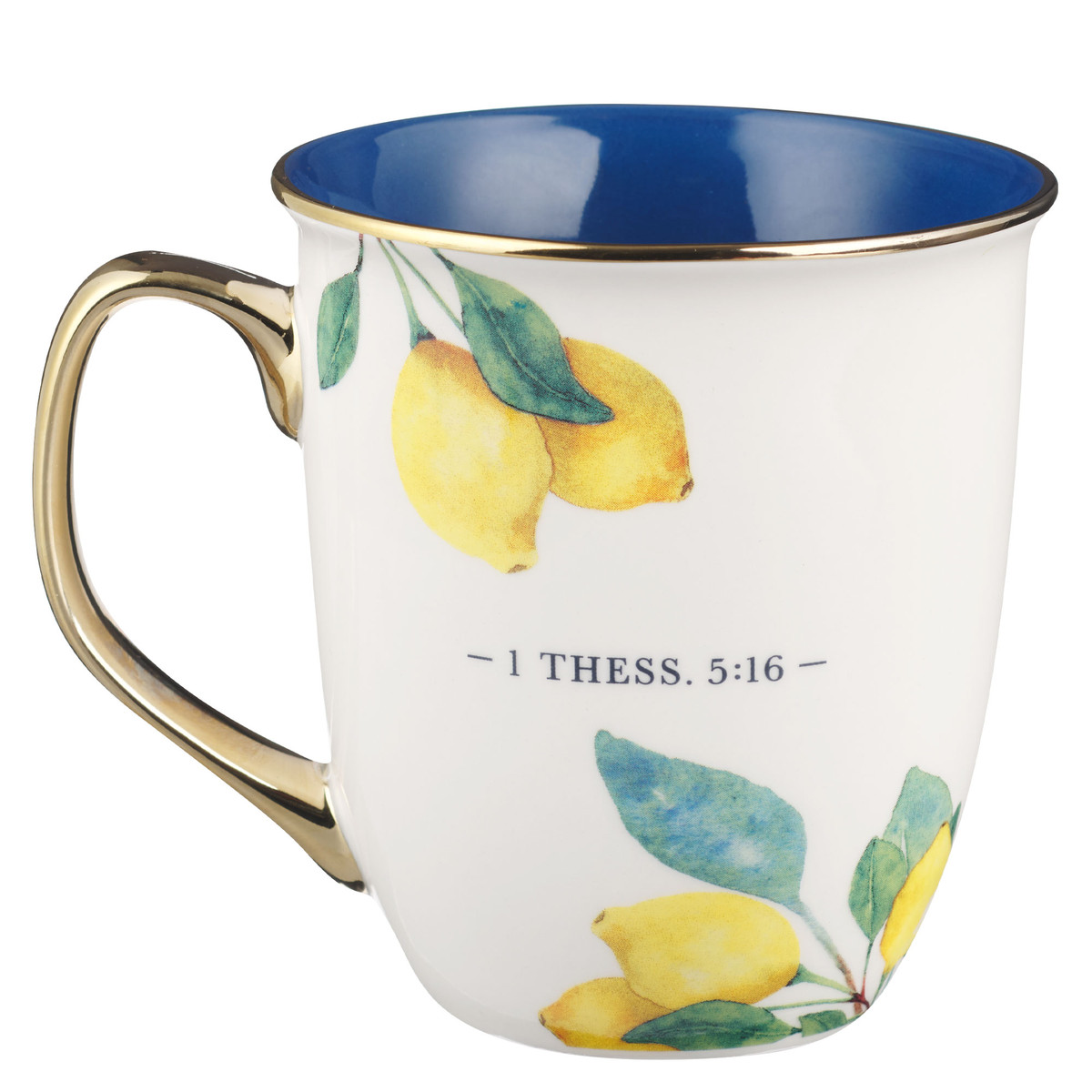 The Rejoice Always White Ceramic Mug, adorned with a refreshing lemon theme, is a delightful reminder to find joy even when life gives you lemons. Embrace the zest of life's challenges as you sip from this cup, knowing God calls us to counteract fear, anxiety, discouragement… through joy. Never let your troubles get you down, keep rejoicing in spite of.