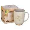 Trust in the Lord white Ceramic Coffee Mug with Exposed Clay Base – Proverbs 3:5
