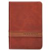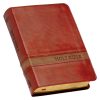 The Two-tone Brown Faux Leather Large Print Compact King James Version Bible combines easy-in-hand portability with easy-to-read text. The classic 1769 King James text is presented in a 10-point type that is considered a large type for a small Bible.