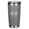 The slate grey exterior of the stainless-steel mug has a matte finish and is laser engraved with a frame and lettering that make up the sentiment.