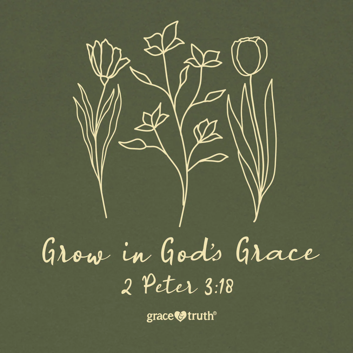 Bloom and thrive in this appealing “Grow In Grace” T-shirt by grace & truth® in Moss. Moment by moment we are transformed by the grace of God as we seek His face and follow the path He lays out for us.